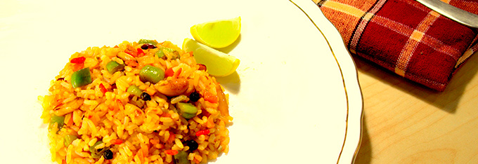 Condimentar el arroz con sal, pimienta y pimentón a gusto. Agregar la Cúrcuma Organikal Superfoods.